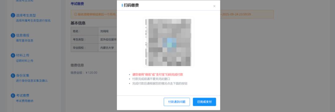 缴费完成后点击弹窗右下角“已完成支付”按钮即完成缴费。