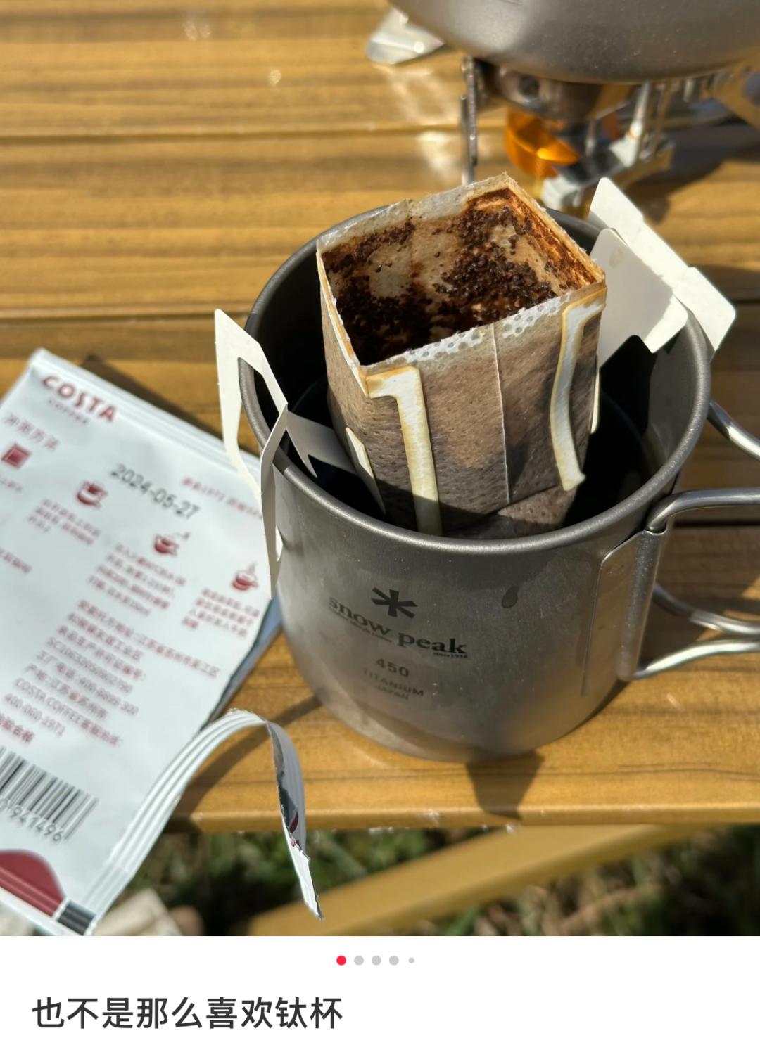 精致露营玩家则用钛杯享受“星空草地下的一杯咖啡”,旁边是同色系的摩卡壶、咖啡豆和电动研磨机,钛起到突出户外感、强调“我并不是在厨房磨咖啡”的作用。