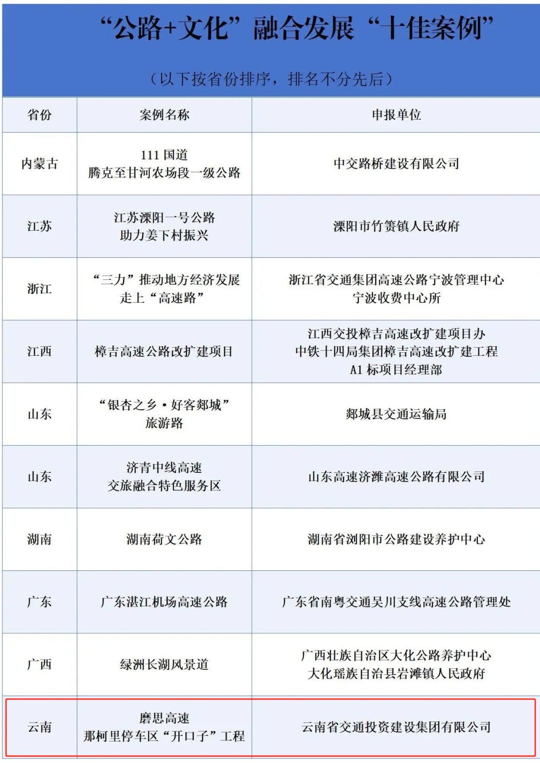 “公路+旅游”融合发展“十佳案例”
