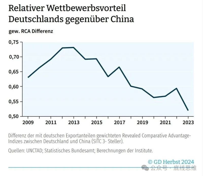 其实,来自中国的竞争压力并不仅仅是在企业的层面上,中国的产业政策和技术攻关的举国体制,也使德国在战略竞争层面上处于劣势。从上面的分析可以看到,德国各党派都拿不出一个真正有效的产业政策来。这一方面是因为政府可以动用的财力有限;另一方面,在目前的体制下,政府和企业及科研机构的合作不可能像中国那样能做到团结一致。且不说,奉行新自由主义的党派本来就反对一切形式的国家干预,根本不可能推行像中国那样的产业政策。从目前各党推出的经济政策看,很难看出有扭转德国对中国相对竞争优势连年下降趋势的可能性。