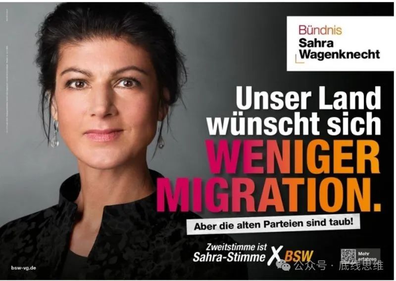 莎拉·瓦根克内希特联盟竞选口号:我们国家希望少一点移民。BSW官网选择党