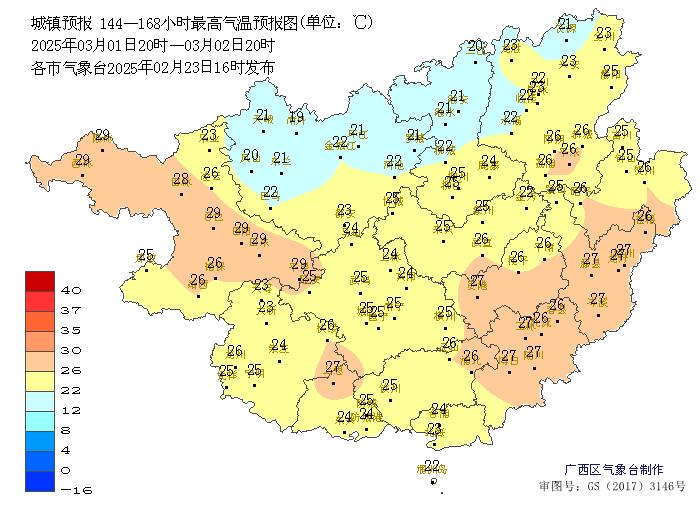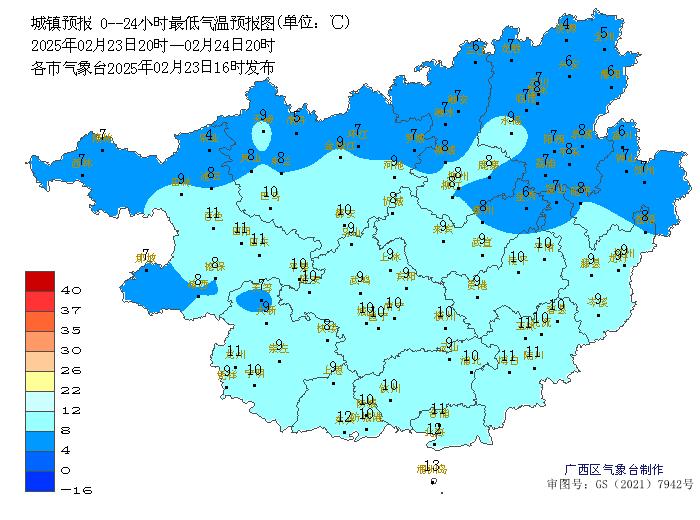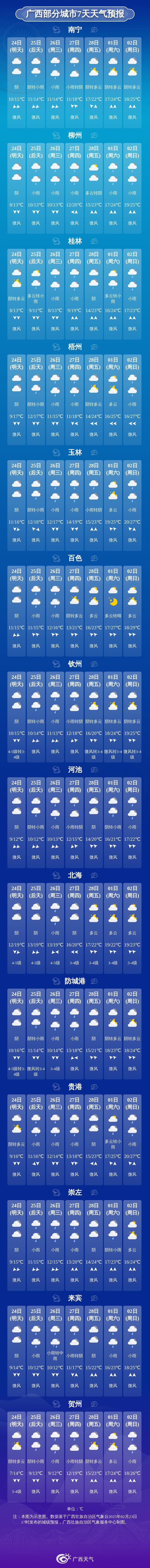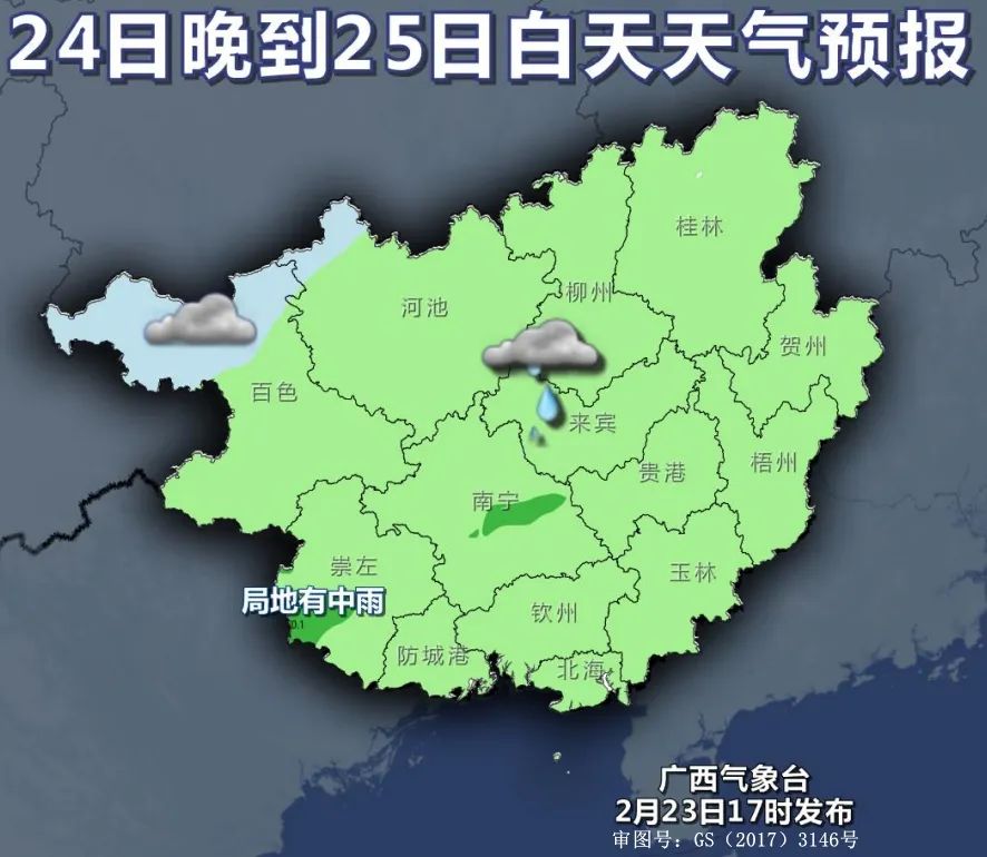 24日晚上到25日白天,全区阴天大部有小雨,其中桂南局地有中雨。