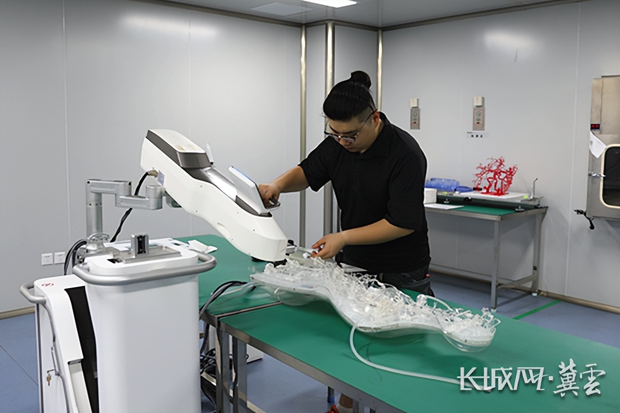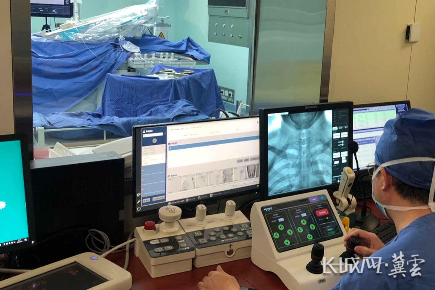 简单来说,该项目就是将手术机器人引入全脑动脉造影手术中,以机械代替人手平稳、精确控制导丝和导管的运动,手术精准度可精确到0.1个毫米,并能将医生从长期暴露在X射线的环境中解脱出来。目前,这款机器人已在河北医大一院完成手术120例。