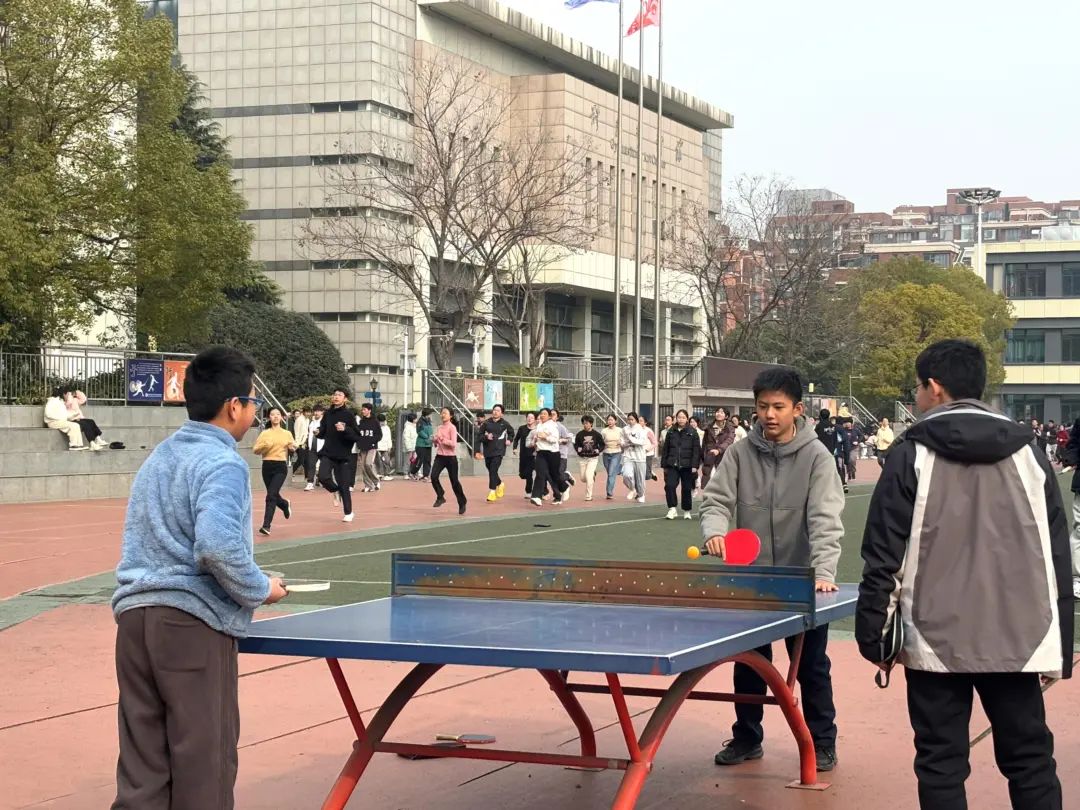 在合肥市五十中天鹅湖教育集团天鹅湖校区的操场上,同学们正在打乒乓球。2024年秋季学期起,合肥全市义务教育学校每天开设1节体育课,相关通知要求,“着力保障学生每天校内运动时间不少于2小时。”课间时长增加后,学生校内活动时间也进一步增加。