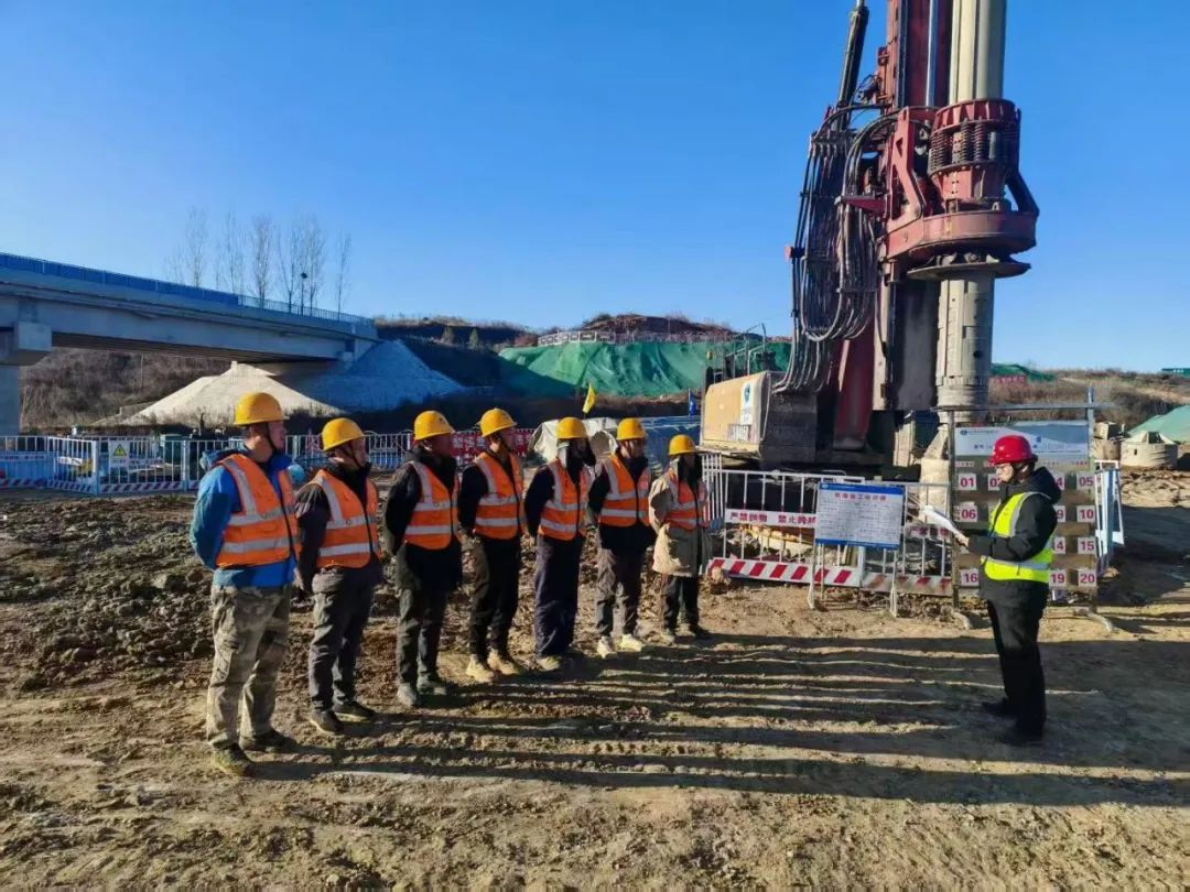 京哈高速九门口复线河北段建设工程施工现场,工人们正在接受新一轮施工任务。(图片由市交通运输局提供)