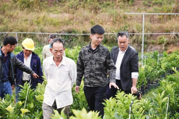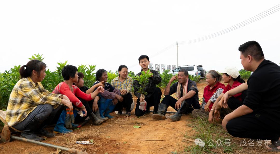 查看橘红树苗长势。2017年,廖志略以外公的名字成立了化州市培林橘红种植专业合作社。成立合作社,既是响应国家政策,也是他深思熟虑后的选择,深知在竞争激烈的市场中,单打独斗难以立足,唯有整合资源,搭建起农户、政府与市场间的桥梁,才能让化橘红产业蓬勃发展。然而,成立合作社的第一件事,就遇到了大难题,因合作社至少需5名农村户口社员,但大家对刚毕业的他心存疑虑,认为他只是一时兴起,并非真心做事,对合作社的前景也持怀疑态度。最终,他从亲友处寻找突破口,反复诚恳劝说,才凑齐人员共同成立合作社。