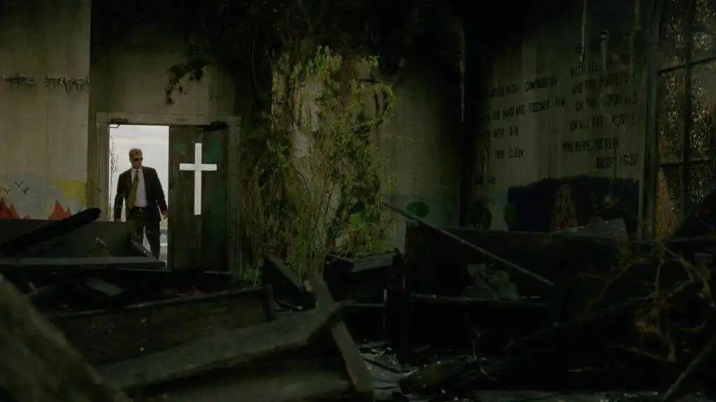 在这一点上,《真探》比《七宗罪》走得更远,后者是一种大都市的罪恶,是钢筋混凝土的角落中隐藏的伤害,被破败的墙壁与残缺的窗户掩映;而前者体现出更蛮荒原始的罪恶。