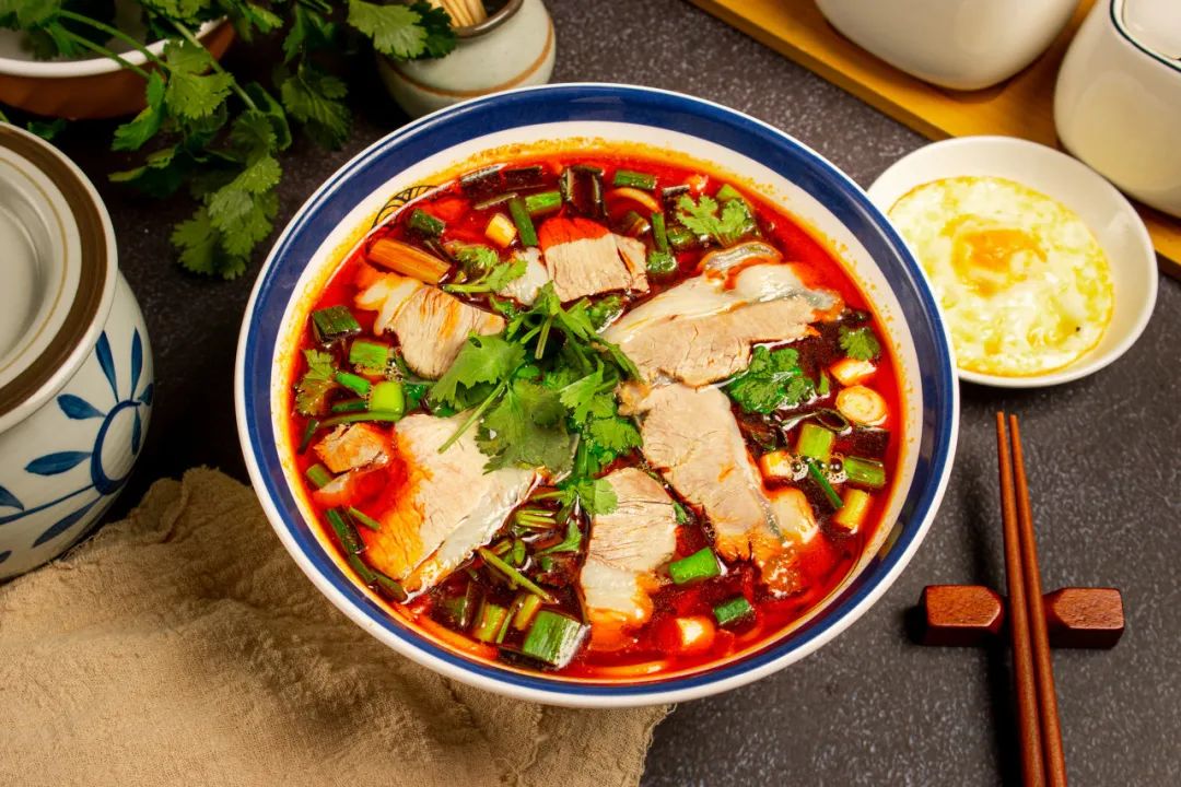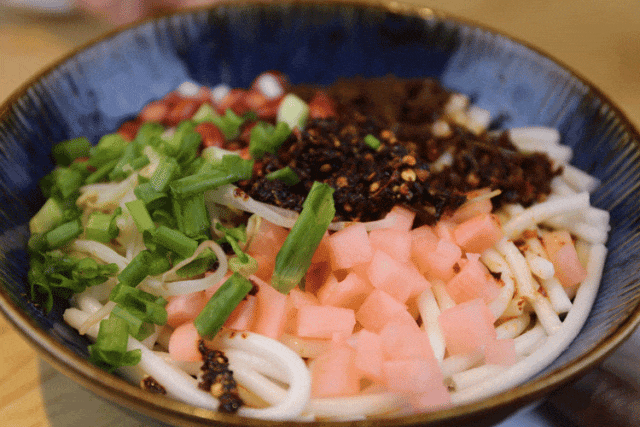 豆花面:将豆花放在面条上,加入辣椒油、蒜苗、香葱等佐料,搅拌均匀后即可食用,口感细腻,酸辣可口。