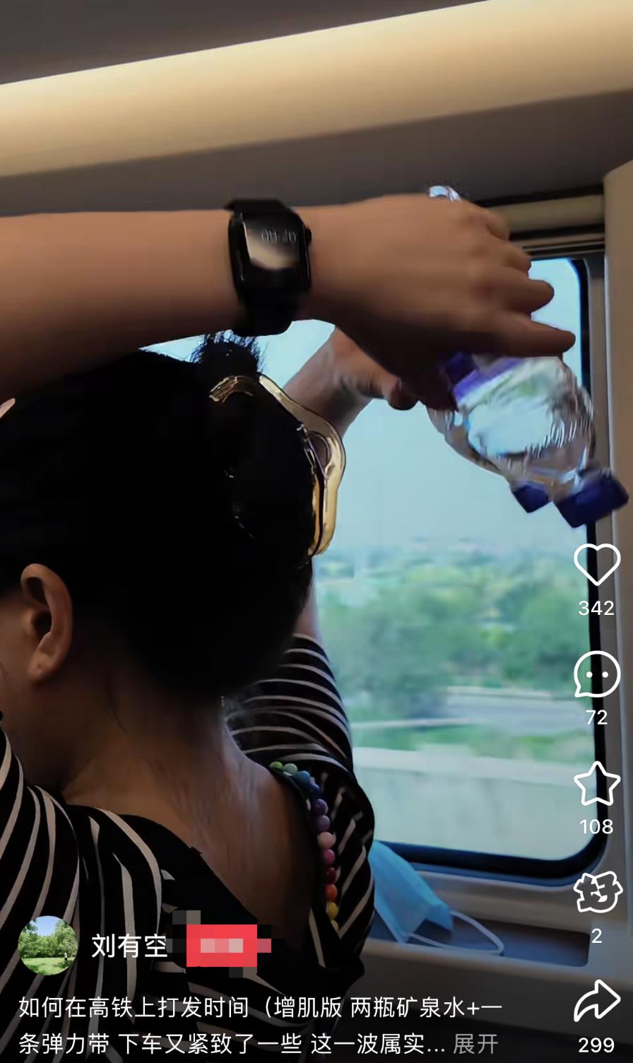虽然很多人觉得,在高铁上健身的打工人,属实是没苦硬吃,“别人坐高铁休息都休息不够,居然还有人会给自己找罪受”。但对于95后北漂张吱吱来说,这几小时是忙碌的工作日中,最能理所当然放松的时候。“平时去健身房健身,不仅一大堆器械不会用,而且还需要花钱办卡,而在高铁上健身既不用办卡,还可以恰到好处地利用起这些碎片时间,让自己的身体好好舒服一把。”