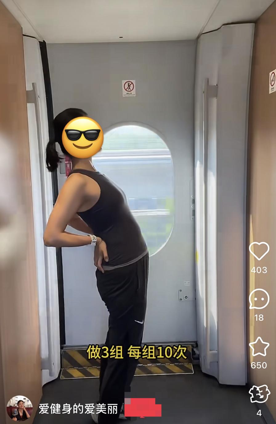“毕竟去健身房,总有种花钱买罪受的感觉,但在高铁上健身,心态便会从‘被迫锻炼’变成‘带薪运动’,瞬间就有了动力。而且高铁空间有限,大部分健身动作幅度都不大,基本是在座位上抬腿拉伸、用拉力带活动肩颈,即便站起来也只是原地扎马步或稳稳深蹲。这些低强度运动,更加适合久坐成疾的打工人。”