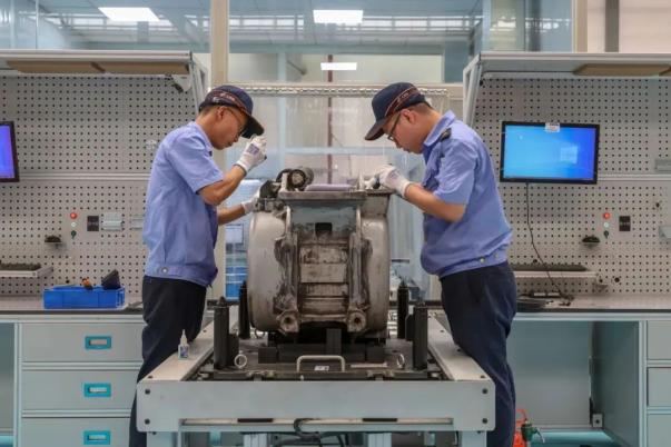 2023年8月,动车转向架库新建数字化牵引电机检修线投入生产。
