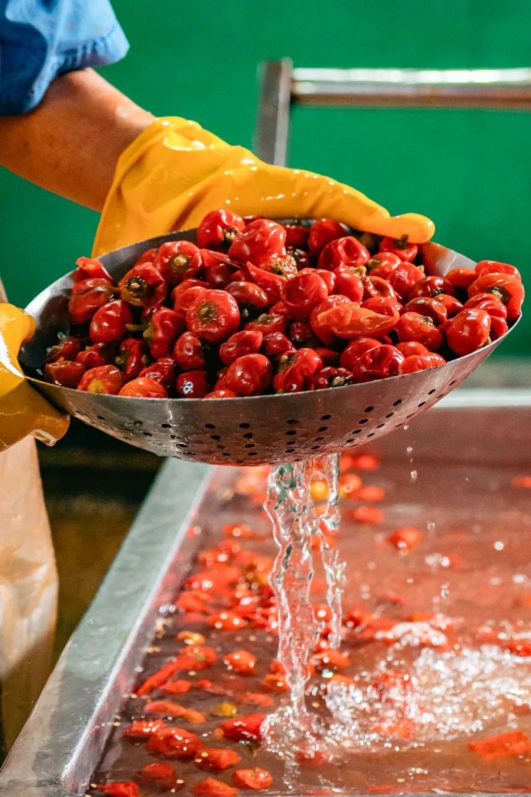 右图:辣椒加工生产线。摄影/陈伟红