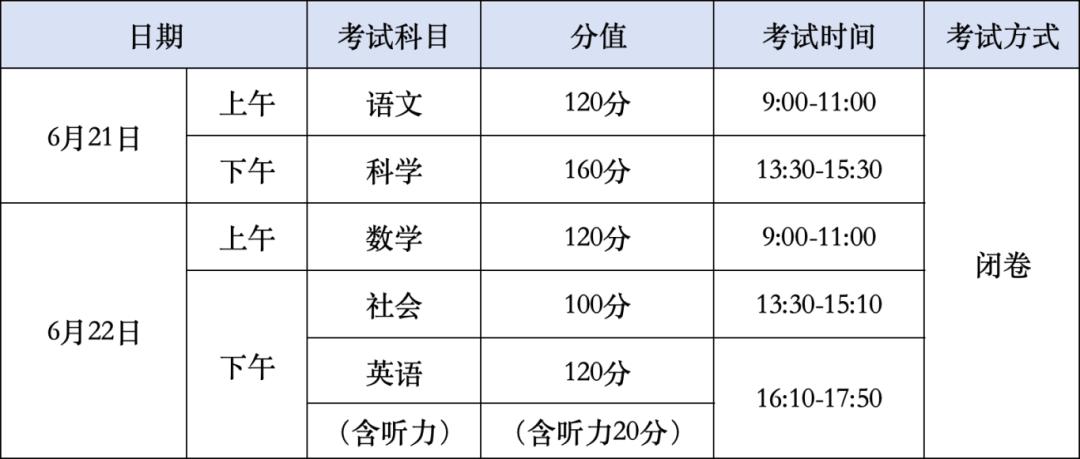 二、中考科目、分值和时间