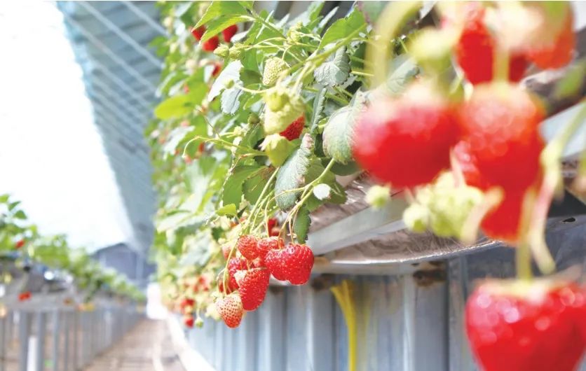 在位于九台区龙嘉街道的数字化寒地高架草莓果蔬种植园区里,调配好的“营养餐”通过数字化水肥一体化系统滋养着高架上的草莓。优化布局
