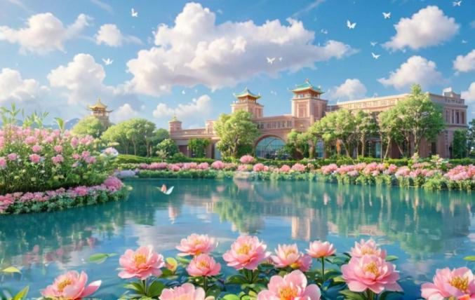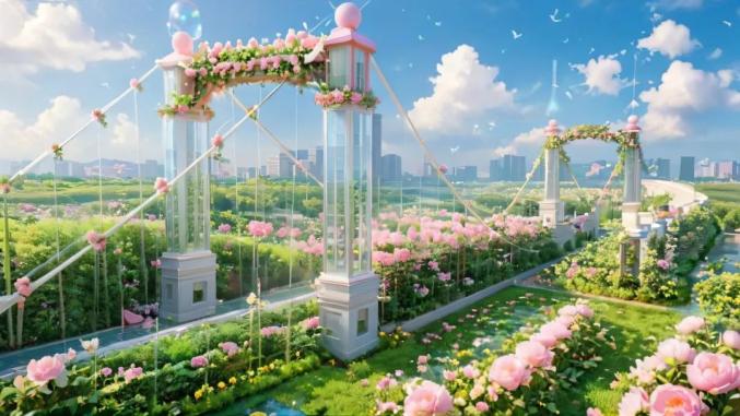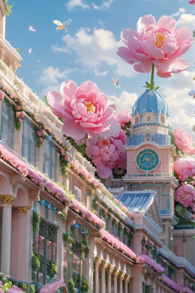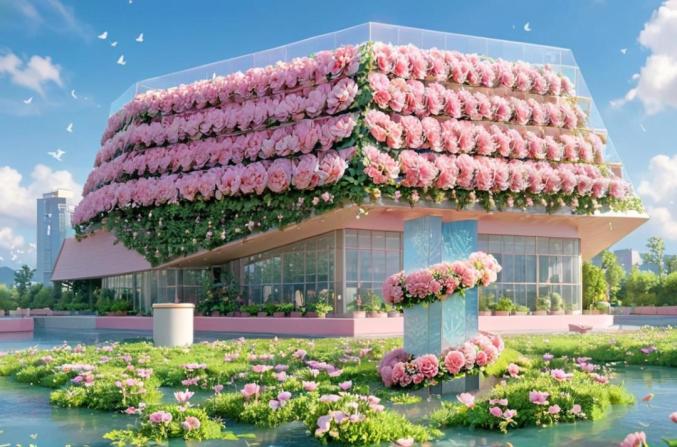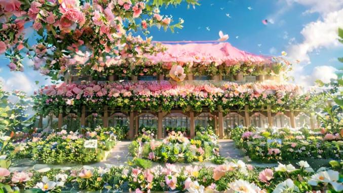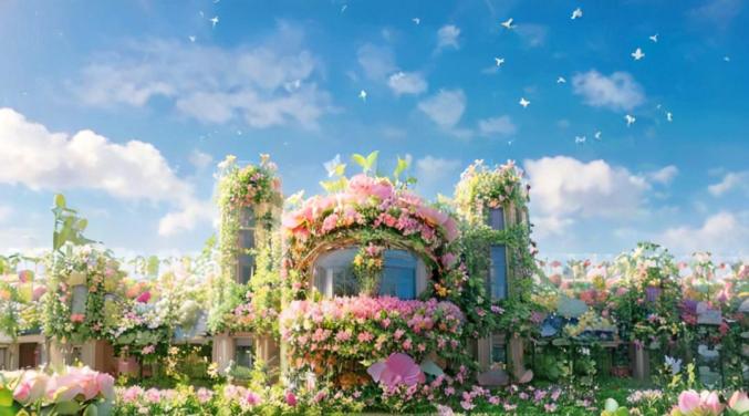 飞檐翘角缀满鲜花