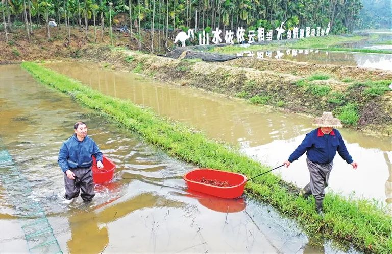 4月至8月种植水稻,确保亩产水稻600斤到800斤;9月到10月投放小龙虾种苗,12月至来年3月持续出虾,平均每亩出产小龙虾200至300斤,活捕直供省内外市场;4月开始种植新一轮水稻……这是海南稻渔综合种养产业发展模式之一——“稻虾轮作”的时间节点。