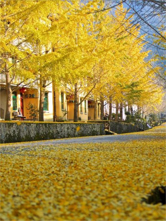 说到帽子峰旅游景区,大家还能想到的定是金秋时节的黄金大道,金光闪闪,搭配复古的建筑,很有意境。走进帽子峰景区,仿佛进入了一个金色的童话世界。这里的银杏叶宛如一片片小扇子,撑开为你遮阳。抬头望去,满树的银杏叶在阳光下熠熠生辉,让人忍不住想要多拍几张照片。