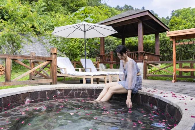 图源:爽爽贵阳南山天沐温泉整体建筑风格巧妙融合中式美学,依山而建,错落有致。这里有规模宏大的户外温泉区域,泡池形态各异、功能齐全,养生保健的中药泡池、美容养颜的鲜花泡池一应俱全。2024年,入选金汤级温泉度假地。