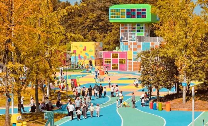 图源: 爽爽贵阳红色息烽园区以儿童喜闻乐见的积木、榫卯为主题,分别设有亲子体验区、水上游乐区、住宿体验区、综合互动区,每一处有了设施都是孩子们心目中的“快乐星球”,充满童话氛围。