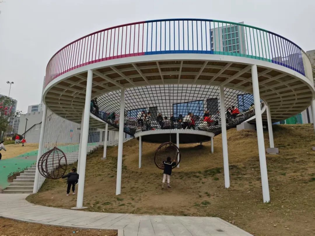 滨江公园是融合自然与趣味的城市乐园。公园一期就是遛娃和休闲的宝藏地。彩色滑梯、别致秋千,免费向大小朋友开放,让欢笑声回荡在空气中;大型攀爬网和沙地区域,激发孩子的探索欲,还不花一分钱。玩累了,在葱郁树木间漫步,呼吸清新空气,享受免费的自然疗愈。