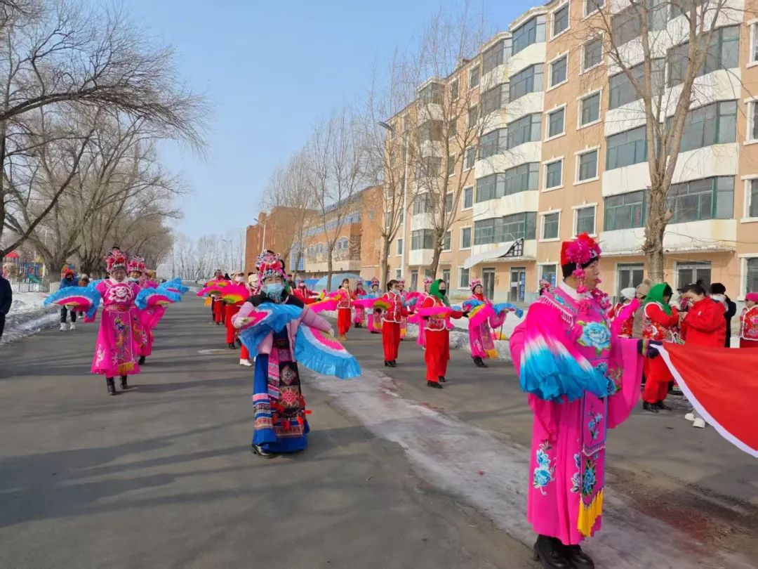活动当日,随着欢快激昂的锣鼓声敲响,扭秧歌活动正式拉开帷幕。身着鲜艳服装、头戴五彩头饰的秧歌队员们个个精神抖擞,他们手持扇子、彩带,迈着轻盈矫健的步伐,扭起了欢快的大秧歌。队形变化多样,一会儿是整齐划一的方阵,如巨龙蜿蜒前行;一会儿又分散开来,化作灵动飞舞的彩蝶,令人目不暇接。队员们脸上洋溢着灿烂的笑容,将欢乐与热情传递给每一位观众。