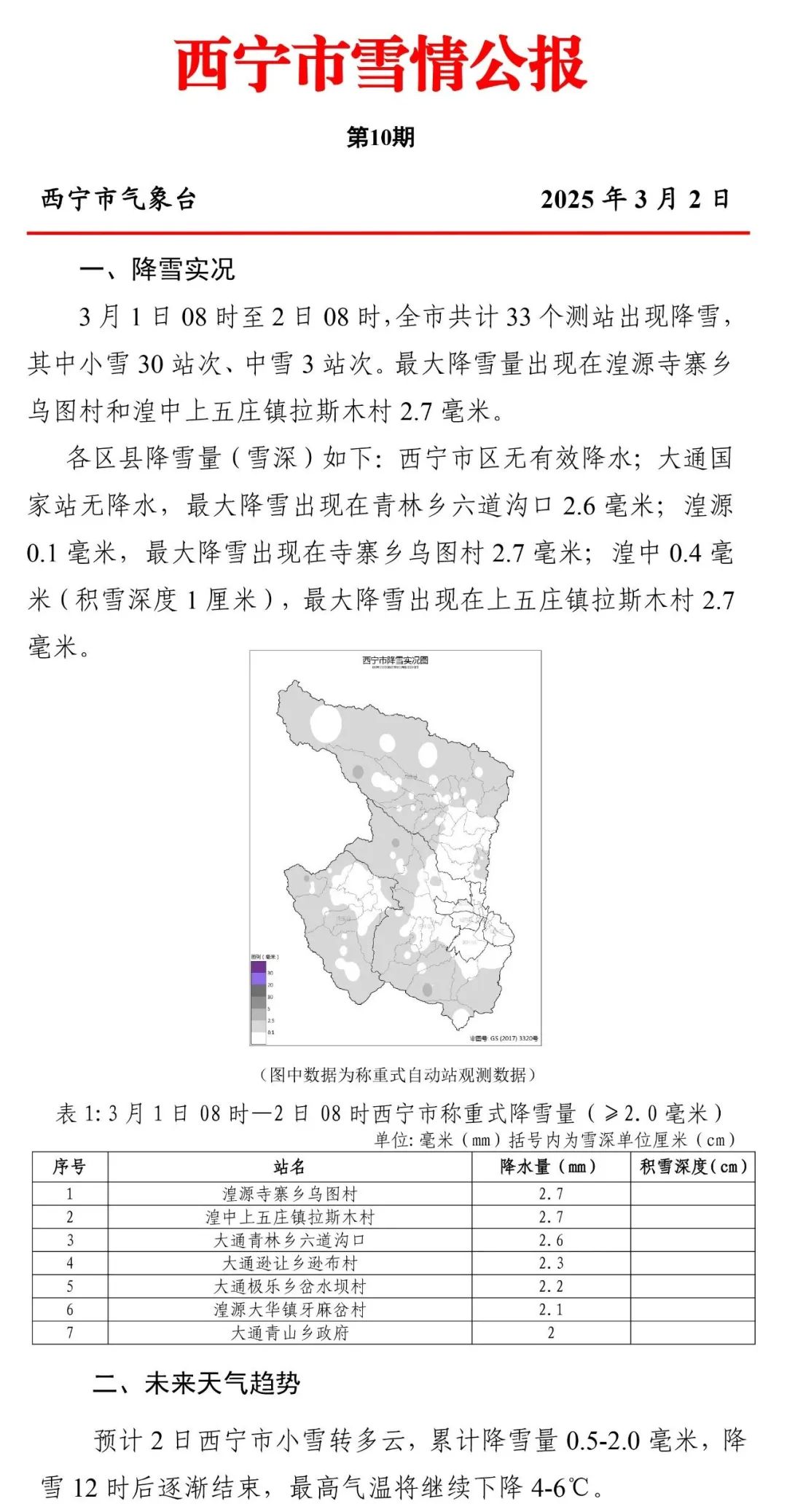 西宁最新雪情公报