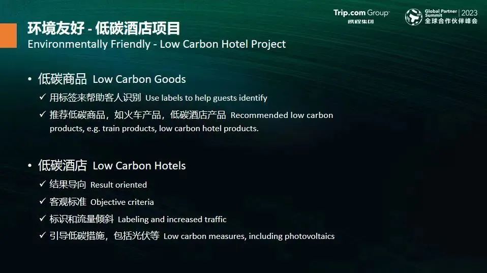 在环境友好领域,为更好地推进行业可持续发展,携程推出《携程低碳酒店标准》,推动全球百万家酒店共同低碳环保。相比此前的行业标准,该标准具备可量化、可检测、可提升等显著特征。除了低碳酒店外,携程绿色低碳还覆盖低碳航班、低碳用车、低碳差旅等场景。携程将与生态合作伙伴联合陆续推出低碳旅行产品,已覆盖超10万个绿色出行产品。截至目前,已有5000万人次选择低碳出行,其中低碳酒店的预订率同比增长166%。