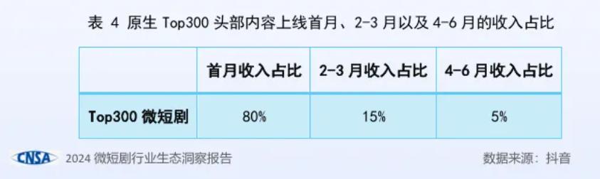 根据中国网络视听协会发布的《2024微短剧行业生态洞察报告》,抖音原生头部微短剧的首月收入占总收入的80%,2-3月后的收入占比为15%,即使进入4-6月阶段,仍能保持总收入的5%占比。这表明,微短剧的盈利模式正转向长期性的用户留存和内容传播。同时,DataEye-ADX行业版数据显示,2024年,参与投流的微短剧总数(去重)超4.46万部,其中新剧总数超3.64万部,占比约82%。老剧长尾效应显著,新剧供应基本稳定。