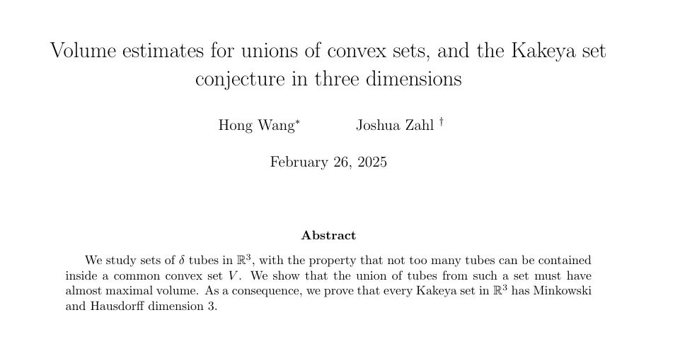 [1] Hong Wang, Joshua Zahl, The Assouad dimension of Kakeya sets in R⊃3;, arXiv:2401.12337