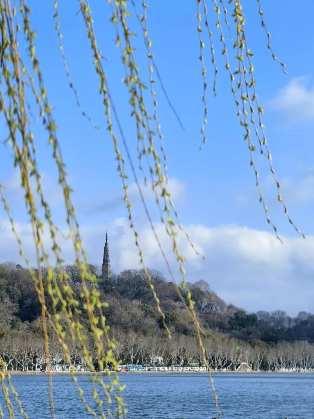 今天西湖边的蓝天白云。摄影:江志清天气虽然转好