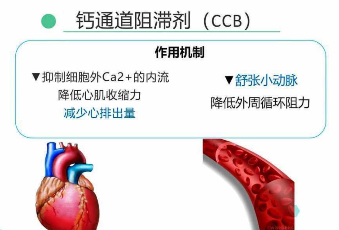 顾名思义,钙通道阻滞剂是通过抑制细胞上的钙通道,使血管舒张或心脏收缩减慢而达到降压目的的药物。因为它的英文全称是Calcium Channel Blockers,所以医务人员会简称这类药物为CCB类降压药。
