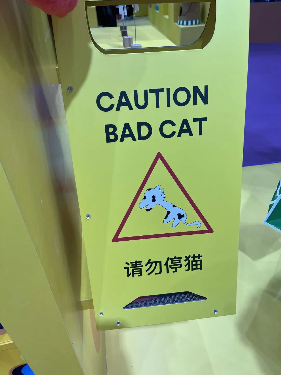 当天人最多的展位是一个玻璃房子,我们挤进去,才看到原来有一只猫咪在玻璃房里跑酷,旁边是三个工作人员密切注视着它的一举一动,围满展厅四面墙的观众举着手机,满怀期待地等着它回头看自己一眼。后来我们才知道这只猫有400多万粉丝,每条视频的内容都是它日常睡觉、吃饭、跑来跑去。但没人记得这个展位到底是卖什么的。