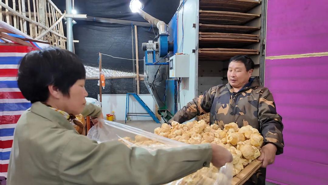 “咱这猴头菇个头大、模样俊,口感那叫一个鲜嫩,尝过的人都夸!”菇农戴天福手脚麻利,边采摘边自豪地介绍,“生长周期大约半年,可以采摘3批,采摘期可以持续到5月。采下的鲜菇集中烘干后,就运往全国各地市场。”