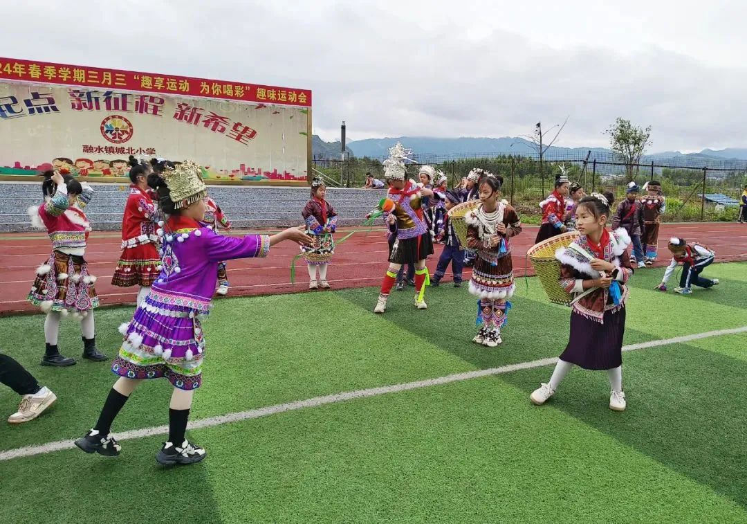 资料图片:2024年4月7日,融水苗族自治县融水镇城北小学师生身着少数民族服饰,齐聚学校操场举行广西三月三“趣享运动 为你喝彩”春季运动会。图源融水苗族自治县融媒体中心