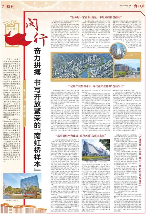 3月4日,《解放日报》2025全国两会特刊关注虹桥国际中央商务区(闵行),具体内容详见↓