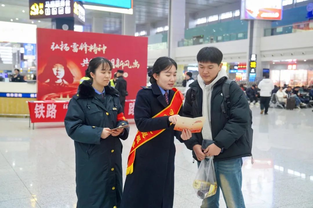本次活动依托“全国学雷锋活动示范点”重庆北站“马廉服务台”、重庆西站“红岩服务站”展开,青年志愿者们通过发放宣传资料、面对面讲解等形式,为旅客提供行程引导、便捷办票、咨询答疑、提拿行李等暖心服务。