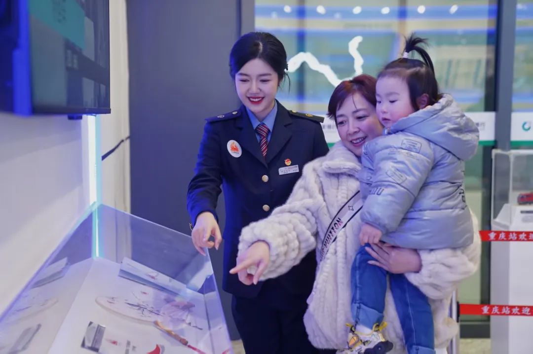 近年来,“红岩服务站”通过打造一台(红岩服务台)、一点(“重庆之眼”网红打卡点)、一廊(铁路发展文化回廊)、三区(商务休憩区、母婴亲子区、童趣互动区)、一馆(复兴号品牌馆),为旅客提供差异化服务。