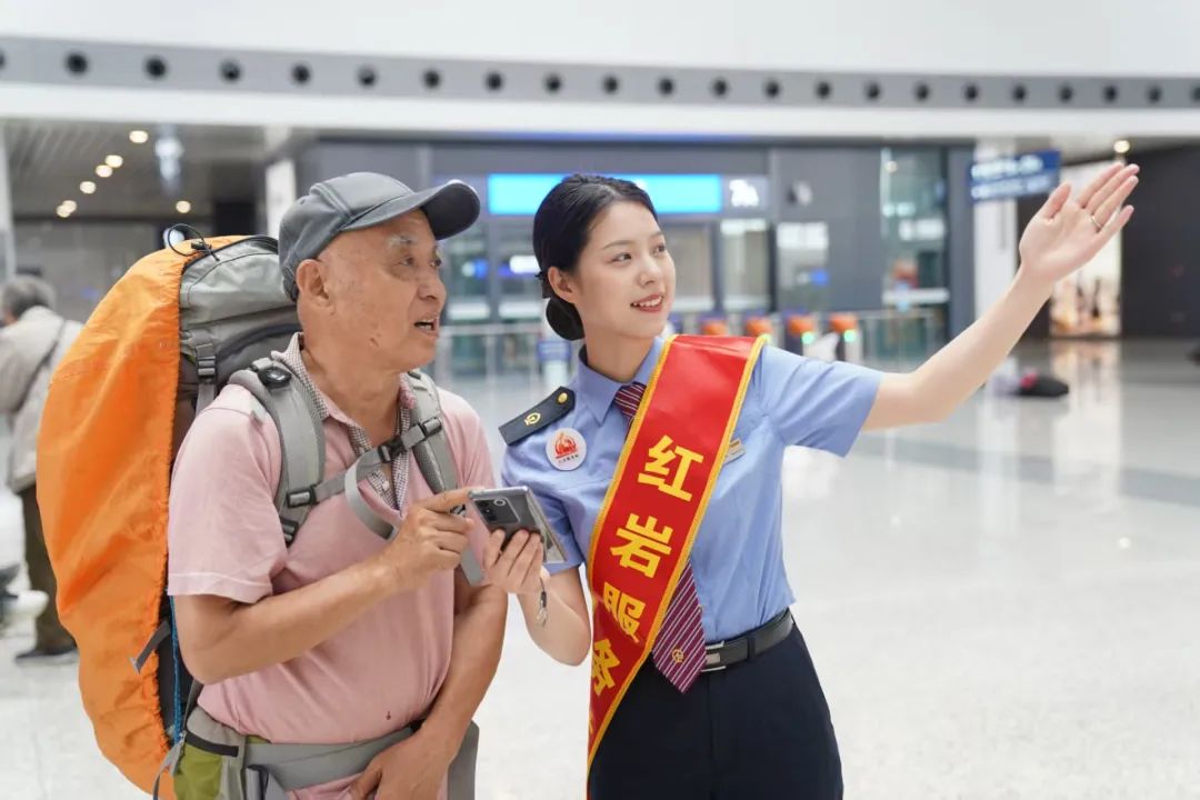 同时针对 “脱网”旅客等重点旅客,开设“银发服务”品牌窗口、爱心服务岗和志愿服务站,用一站式服务的人性化举措解决旅客出行难题。