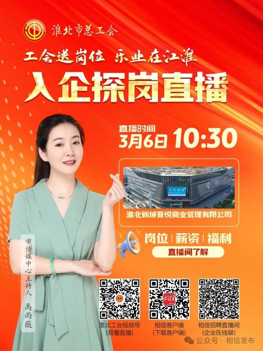 2025年,淮北市总工会持续开展“工会送岗位 乐业在江淮”就业援助行动。将带领大家走进目标企业,深入了解企业的真实情况、工作环境、岗位需求以及薪资待遇等内容。