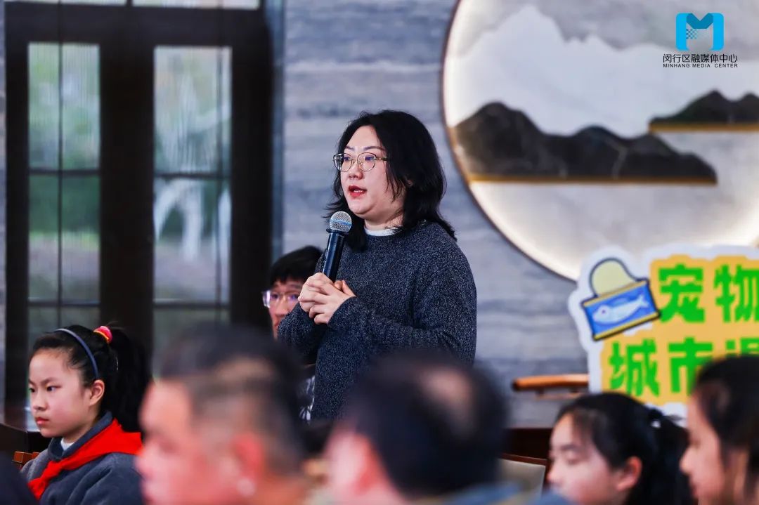 “牵住的不仅是狗,更是责任”上海师范大学附属闵行第三小学的学生小陈首先举手:“狗狗在草坪上打滚的样子很可爱,但它们的便便不该留在别人散步的地方。我觉得文明养宠就是在自己的快乐的基础上,不影响别人。”童言无忌,却让不少成年人点头鼓掌。闵行区三三宠物俱乐部的负责人翟江接过话筒,“我们带狗出门一定会清理粪便,但光做这些不够。我常和邻居们聊天,告诉他们狗狗打过疫苗、定期驱虫。很多人怕狗,是因为不了解”。