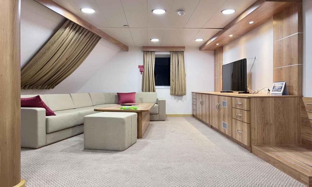 改造后的客货班轮,拥有各类客房200余间,配备韩式榻榻米房间,能够搭载1500名乘客。