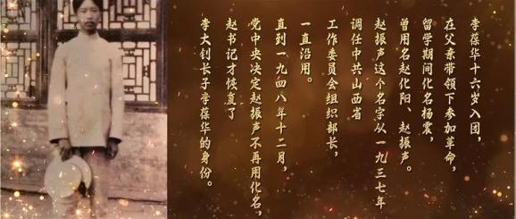 李葆华16岁入团,在父亲带领下参加革命,留学期间化名杨震,曾用名赵化阳、赵振声。赵振声这个名字从1937调任中共山西省工作委员会组织部长,一直沿用。直到1948年12月,党中央决定赵振声不再用化名,赵书记才恢复了李大钊长子李葆华的身份。新中国成立后,李葆华在社会主义革命和建设中担任了多项职务,做出了突出贡献。在工作中,他初心不渝,始终把人民利益放在心上。他牢记着父亲为他取名葆华的深刻寓意:“葆我中华,重现青春”,并为之奋斗一生。