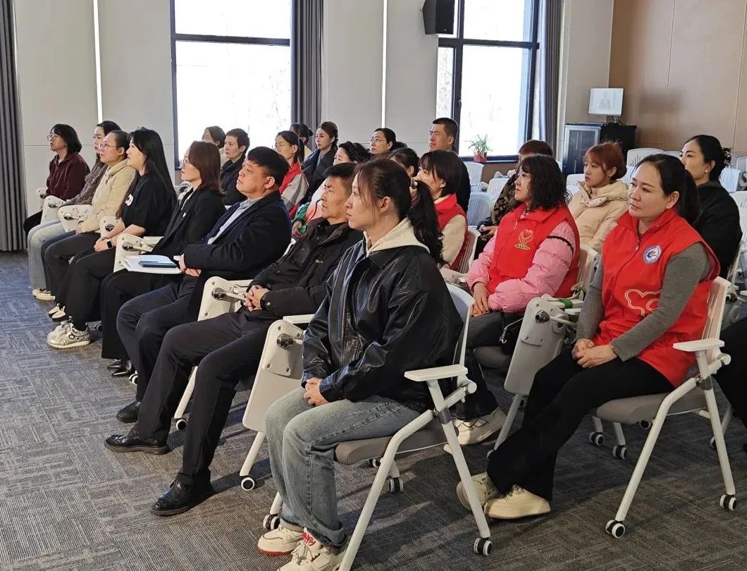 ▲水岸花园社区干部职工收听收看十四届全国人大三次会议开幕直播。水岸花园社区书记任燕: