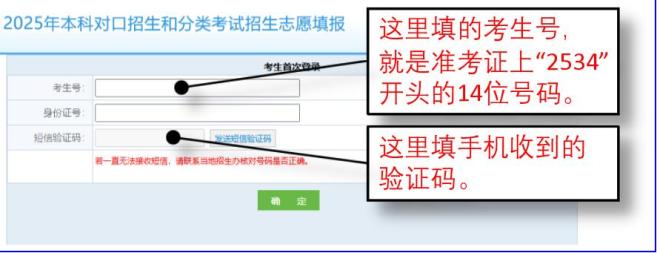 4. 首次登录和志愿提交时均会发送短信验证码,如遇无法接收短信验证码、遗忘考生号、更换了手机号码或号码有误等问题,请联系报名点或当地招办及时处理,以免耽误志愿填报。