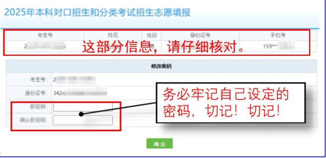 设定完成后须重新用密码登录。4. 仔细阅读考生须知、《安徽省2025年普通高校招生考生诚信承诺书》《隐私协议》后,在小方框中“打勾”,点击“下一步”继续填报。一旦点击了“下一步”即表示你知晓并认可相关要求。