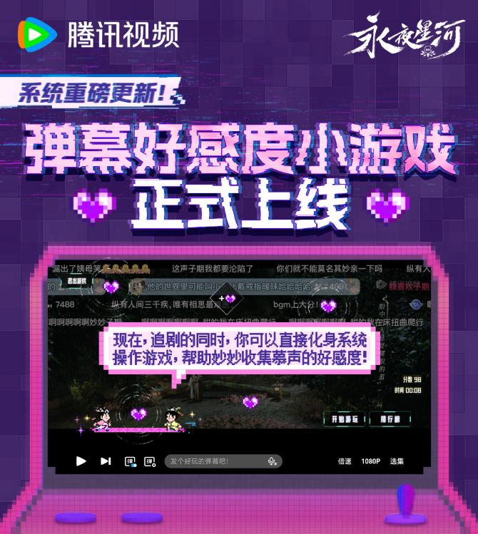与沉默的中高龄用户相反,这批触网而生的年轻用户有着强互动意愿,因而在纯粹的剧集内容之上衍生出更多丰富玩法。《永夜星河》的成功部分来源于这种综合体验,除了抽卡、弹幕游戏等年轻用户熟悉、喜爱的玩法,《永夜星河》在播出前后持续、高频的抖音营业互动,提供给年轻用户「事事有回应」的情绪价值。