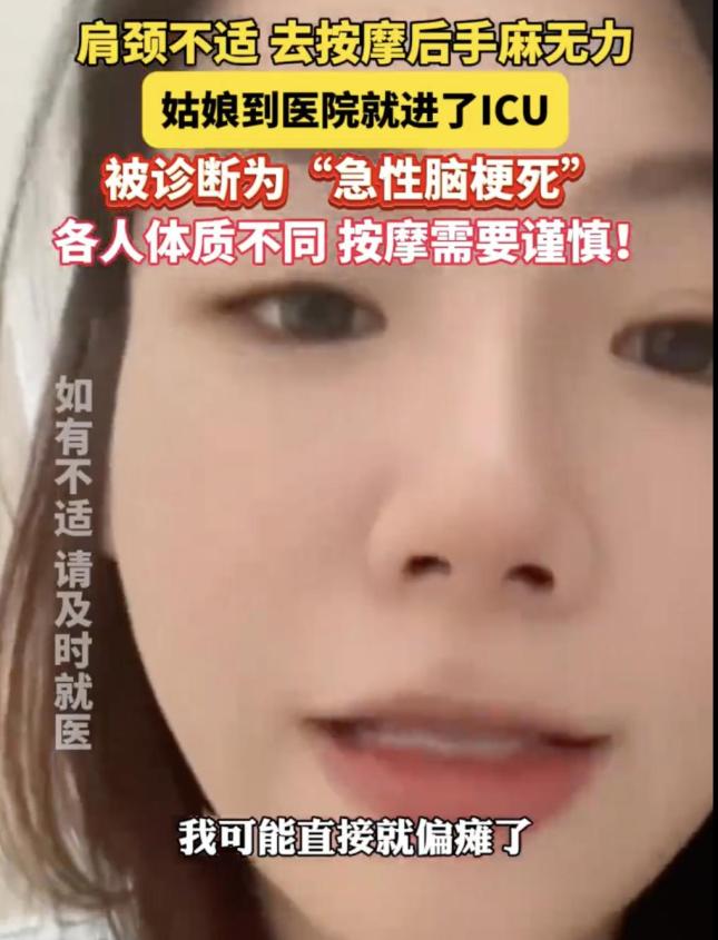 医生表示,由于颈动脉位置表浅,如果持续受到外力刺激及损伤,如颈部按摩、快速剧烈的转颈动作、举重、瑜伽等,在特定情况下就有可能形成动脉夹层。结合病史来看,大概率是因为按摩颈部过猛、过频所致。网友:要选择正规按摩服务