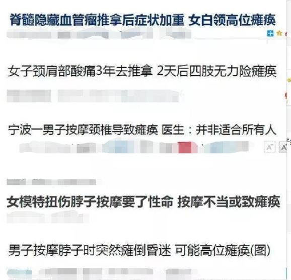 事实上,不少骨科医生都表示接诊过很多发生在按摩店的“惨案”!脱位、高位截瘫、骨折……