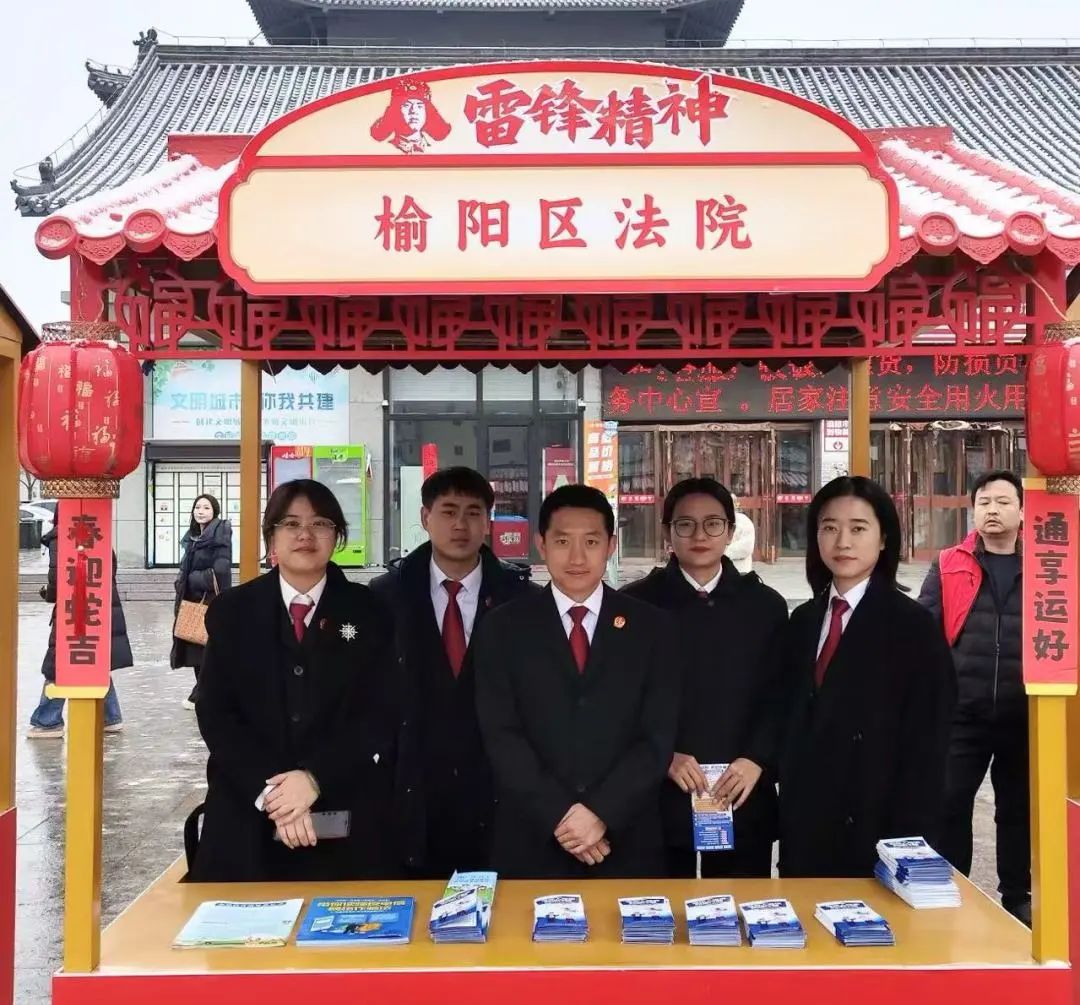 在第62个“学雷锋纪念日”到来之际,共青团榆阳法院团支部参加“青春志愿行,奋进新征程”学雷锋志愿服务活动。在新明楼三官会社区摆起以防范老年人电信网络诈骗为主题的普法小摊。