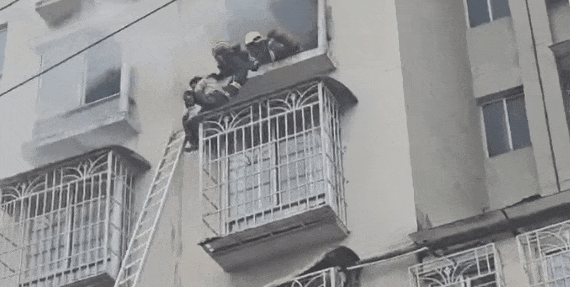 小心!“饭桌炸弹”家中爆炸引火,男子蹲坐3楼窗台求生